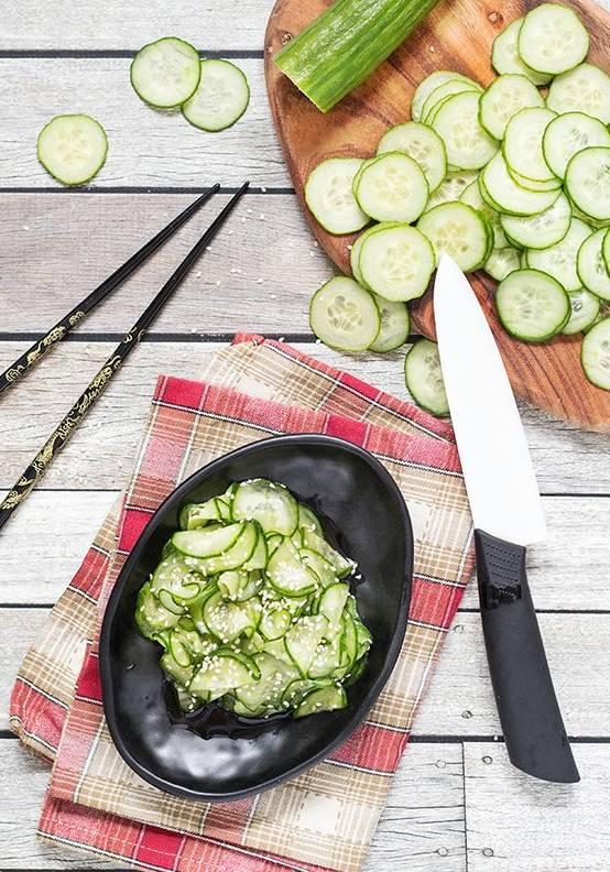 将腌好的瓜类切成小块,放入口中,既可以解馋,又可以补充能量。